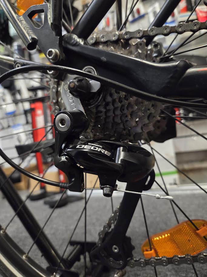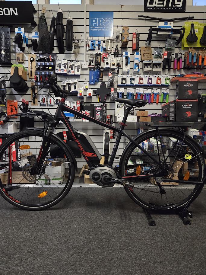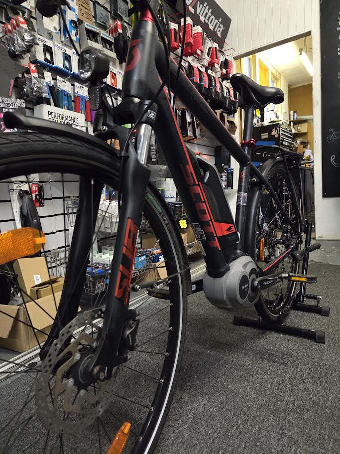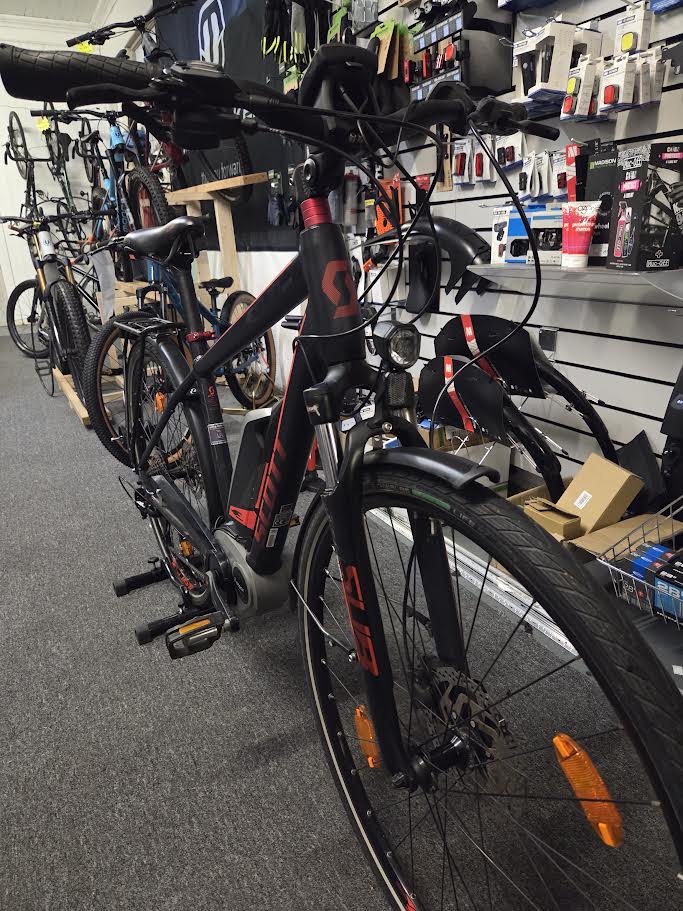 The Scott tour 10 is the perfect bike for casual city riding or commuting. It comes equipped with a Bosch motor and a battery capacity of 400 watt-hours, as well as Shimano Hydraulic disc brakes, and a Shimano Deore drivetrain. With just 1600 miles on the clock, it is practically as good as new, and as with all of our pre loved bikes it will get a full check over and inspection before you pick it up.