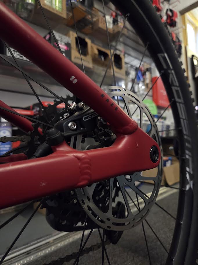 Sram G2 R, 4-piston caliper, Centerline 180mm IS 6 bolts one-piece rotor, steel-backed organic pads